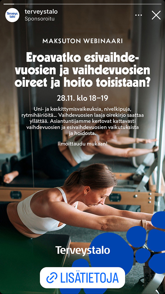 • Terveystalo.com: Terveystalon omilla verkkosivuilla ilmestynyt sisältö toimi asiakaspolun alkuna ja materiaalipankkina (kampanjasivu ja artikkelit)