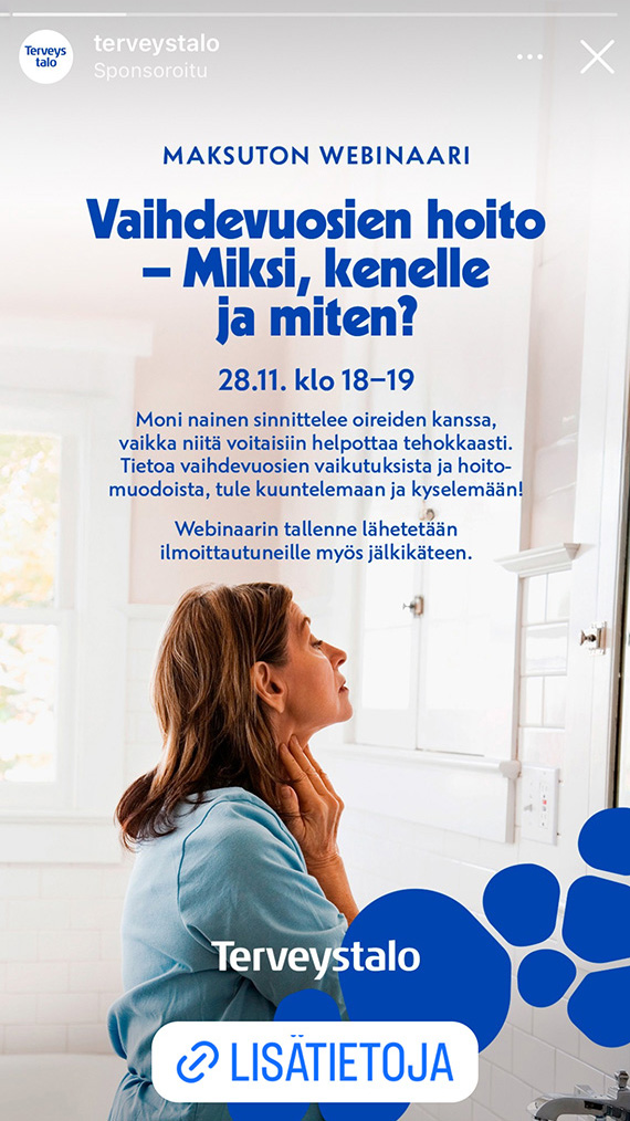 Tämä oli aito puute ja epäkohta, jonka Terveystalo oli tunnistanut. Tietoa kyllä oli, mutta se ei tavoittanut vaihdevuosi-ikäisiä tai vaihdevuosia lähestyviä naisia, eikä edes kaikkia terveydenhuollon ammattilaisia. Terveystalo lähti kouluttamaan ammattilaisiaan mutta halusi samalla lisätä vaihdevuosiin liittyvää tietoisuutta ja muuttaa asenteita myös laajemmin: tehdä vaihdevuosista yhtä normaalin asian kuin vaikkapa kuukautiset.